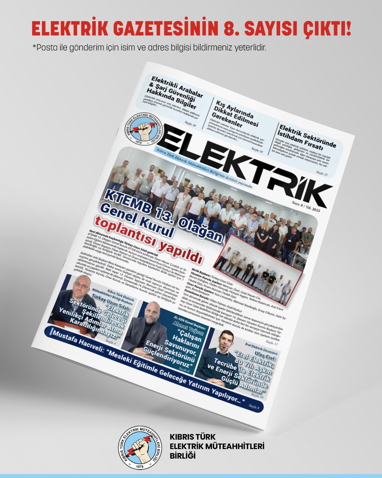 17 March 2025 Print Email Tweet Electric Newspaper No.8 You can download the 8th issue of the newspaper digitally from our website. ElektrikZGazatesiZ8.Zsayysy.jpeg More in this category: « Gelecek Enerjidir (Eğitim ve İstihdam Programı) Gelecek Enerjidir (Eğitim ve İstihdam Programı) »